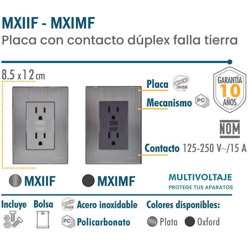 Tomacorriente Falla Tierra MXIIF-002 Inoxium1FSilver Enchufe Placa Doble