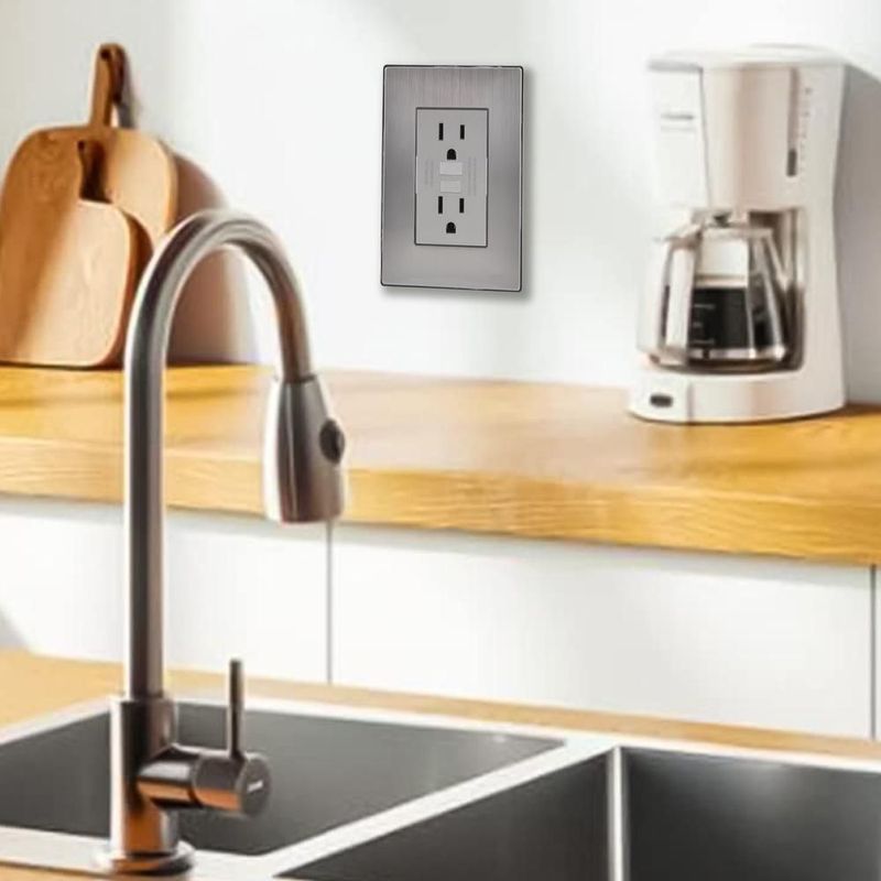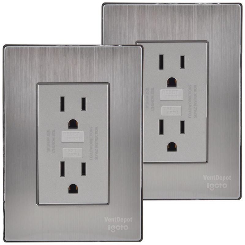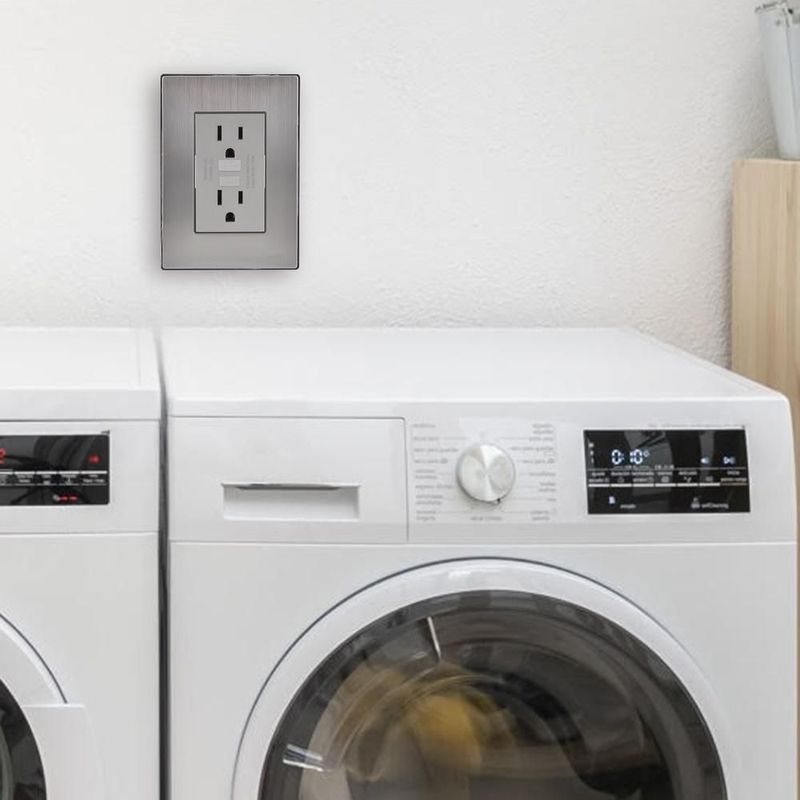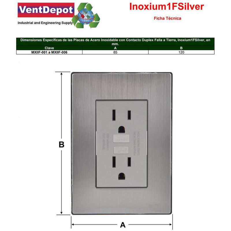 HerramientasMaterial EléctricoApagadores y ContactosTomacorriente Falla Tierra MXIIF-002 Inoxium1FSilver Enchufe Placa Doble