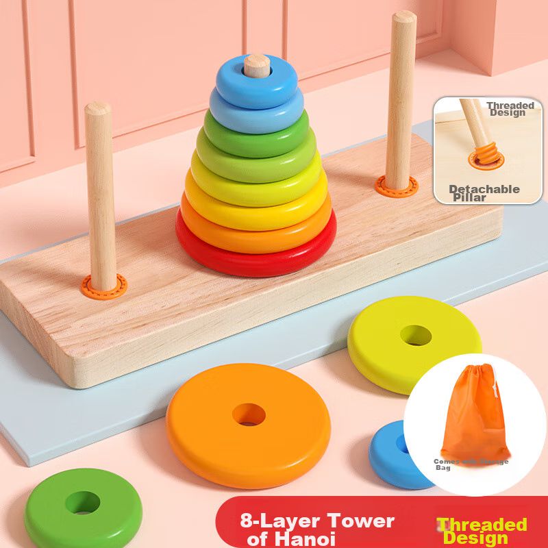 Torre de Hanoi Fuhaier 8 Discos Madera