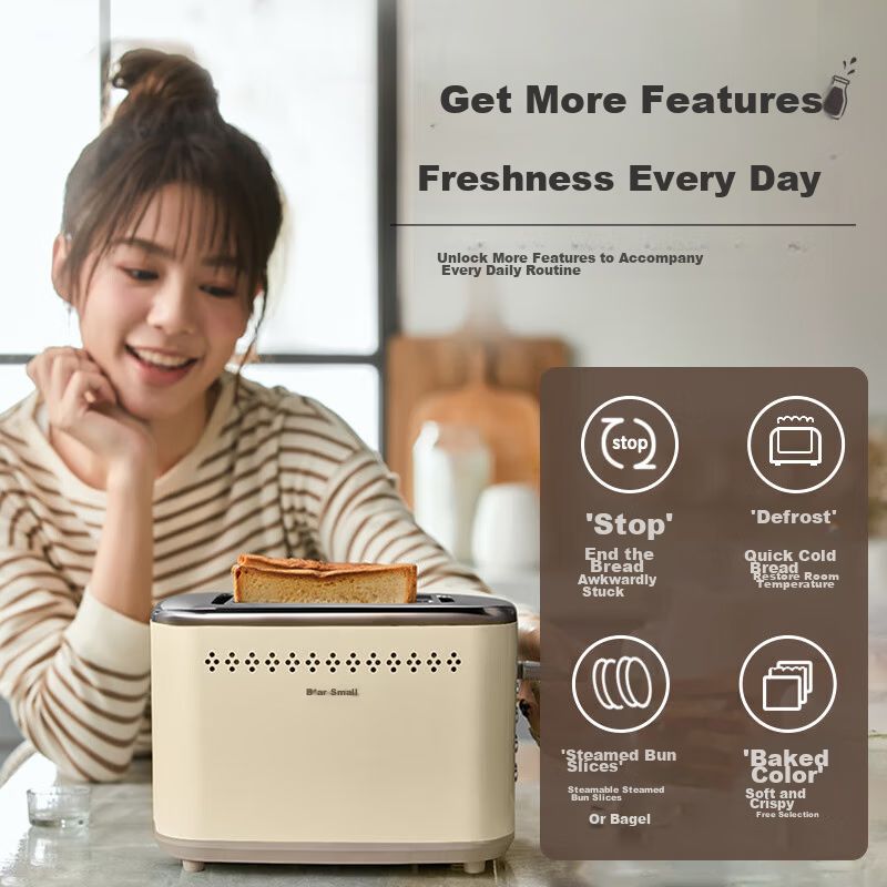 Línea blancaElectrodomésticosEspecializadosTostadora Automática Bear Dsl-C02M6 2 Rebanadas Beige