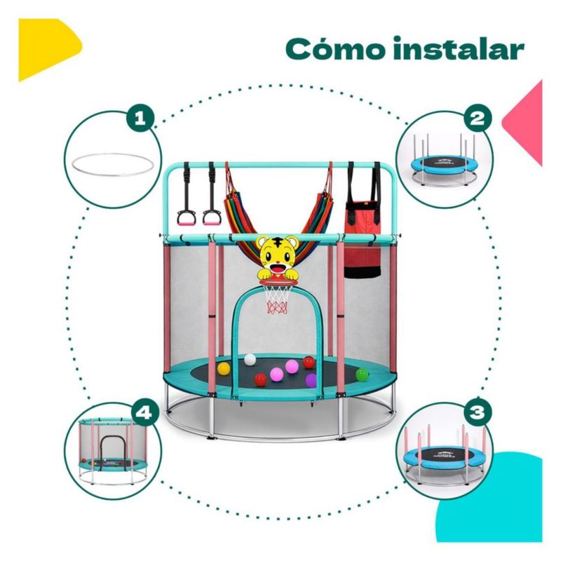 Trampolin Brincolin Little Monkey 142cm Infantil Multijuego Base Reforzada Ideal para Ninos Pequenos Uso Interior Exterior Seguro Resistente Divertido