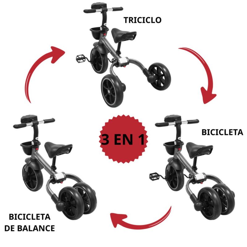 Triciclo 3 en 1 Plegable para Niños Convertible a Bicicleta y Balance Bike Luz Sonido Apto a partir de 2 Años o Hasta 25 kg - Gris