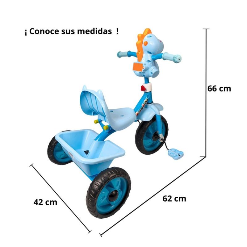 Triciclo infantil dinosaurio con luces y sonidos 3 a 5 años - Azul