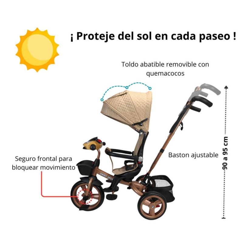 DeportesBicicletasTriciclosTriciclo Infantil Tipo Carriola con Bastón Ajustable Luz y Sonido-Caqui