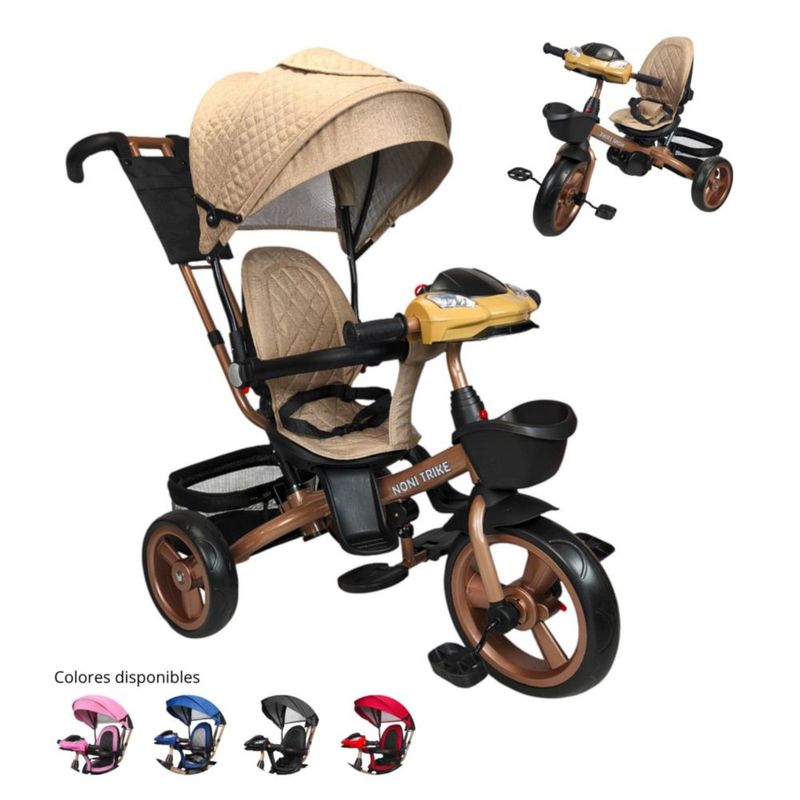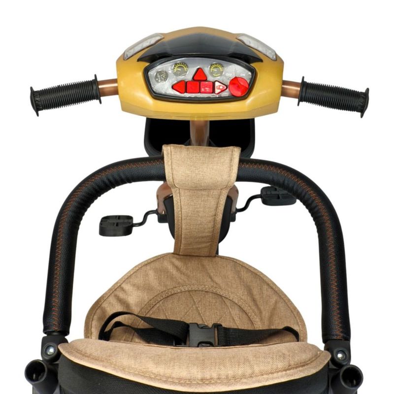 Triciclo Infantil Tipo Carriola con Bastón Ajustable Luz y Sonido-Caqui