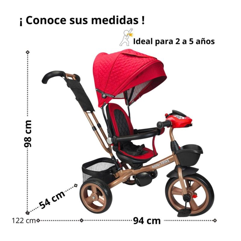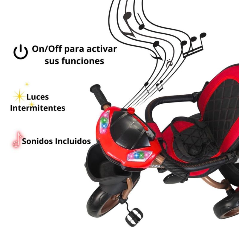 Triciclo Infantil Tipo Carriola con Bastón Ajustable Luz y Sonido-Rojo