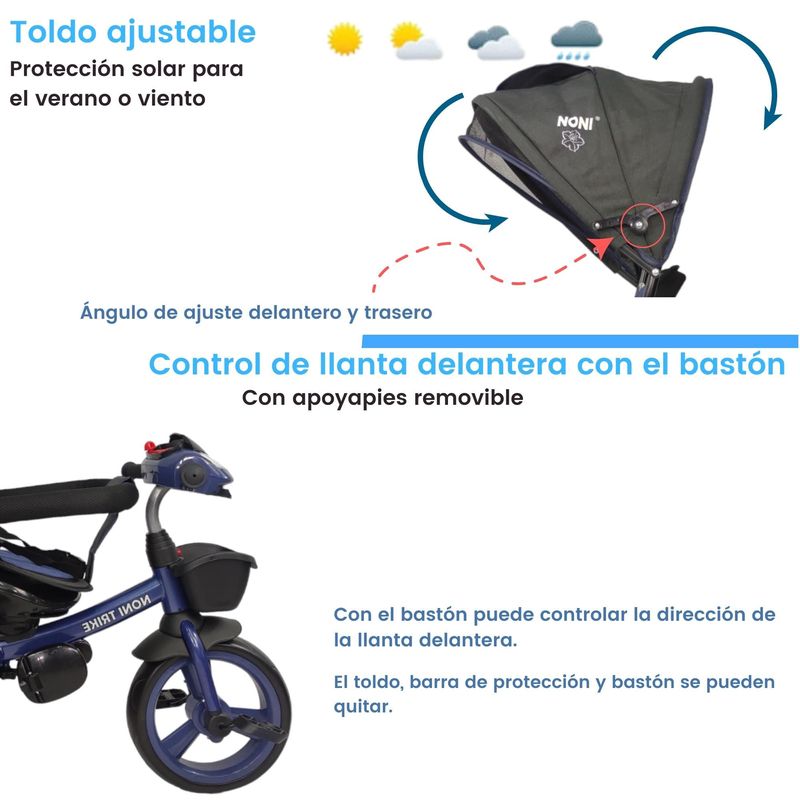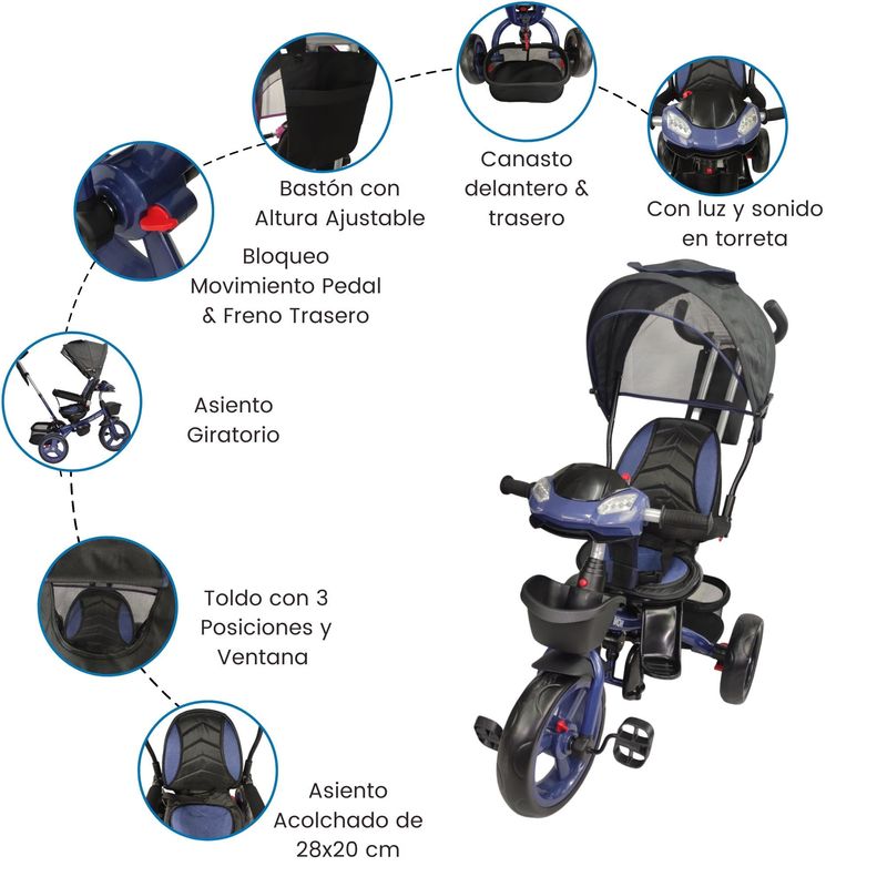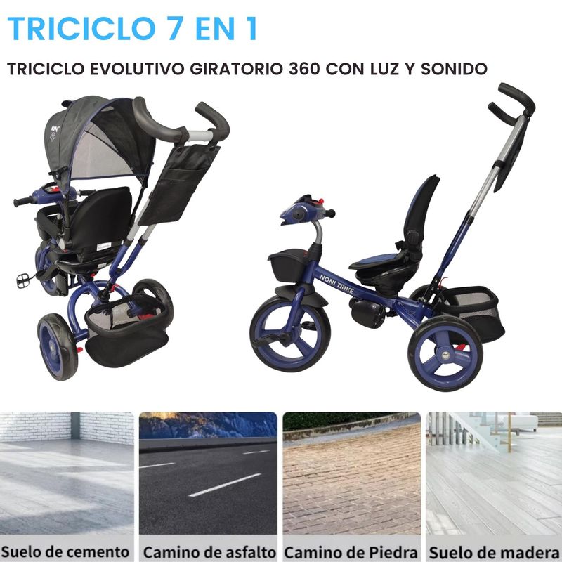 Triciclo para Niños 7en1 con luz,sonido,Asiento Giratorio 360 Azul