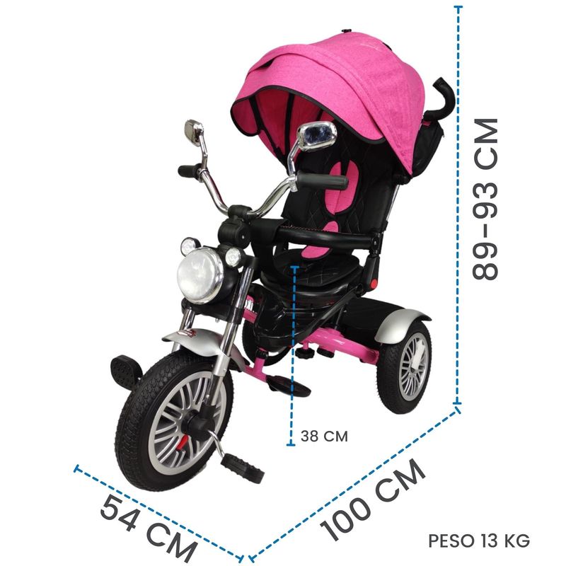 Bebés y juguetesJuguetesMontablesTriciclo para Niños 8en1 Asiento Giratorio y Reclinable, sonido Rosa