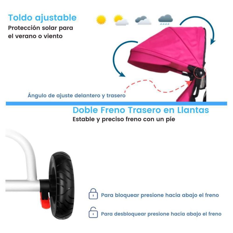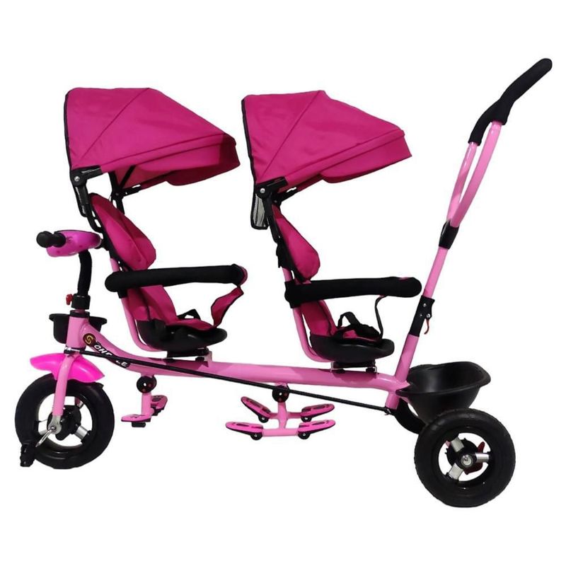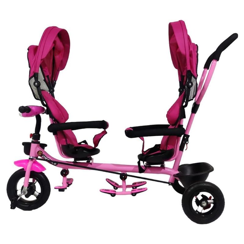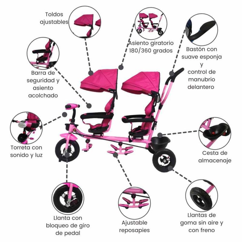Triciclo para Niños Gemelar Doble Giratorio 360,Luz,Sonido Rosa