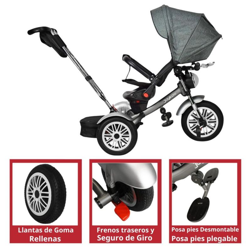 Triciclo para Niños Reclinable Giratorio 360 Sonido Llanta de Goma - Gris