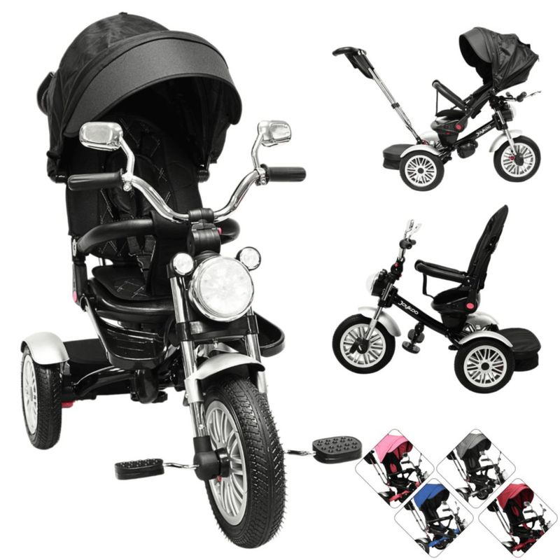 Triciclo para Niños Reclinable Giratorio 360 Sonido Llanta de Goma - Negro