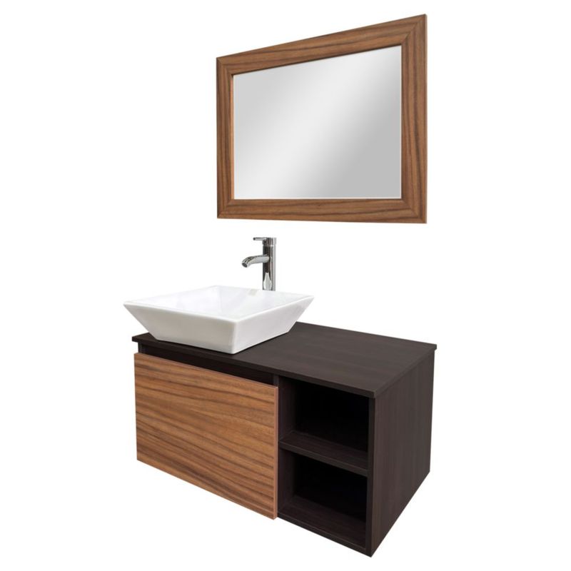 Kit 4 en 1 mueble para baño flotante Uccello incluye gabinete lavabo espejo y llave Diseño moderno medidas 80 x 46 x 40 cm