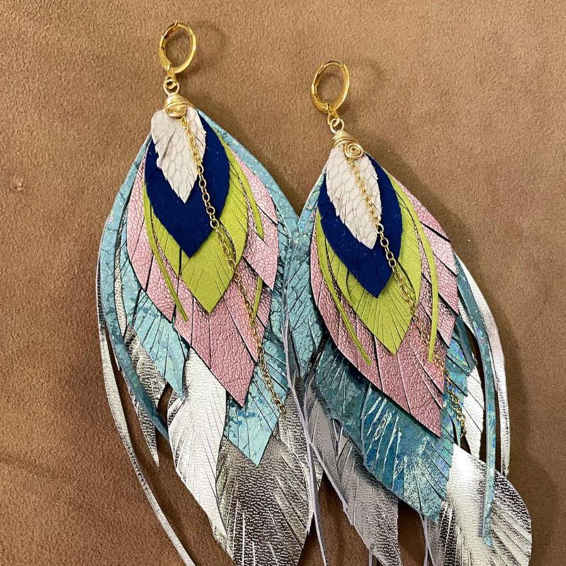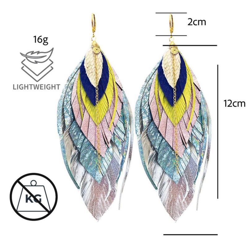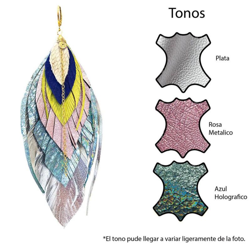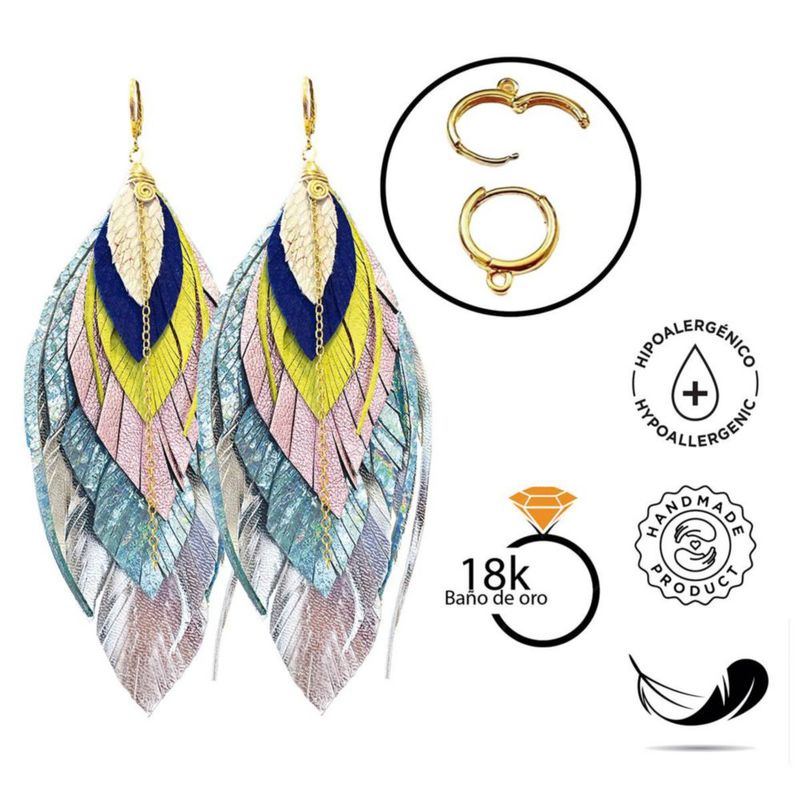 Vangania Aretes largos 12cm piel arcoíris metalizada azul rosa baño oro