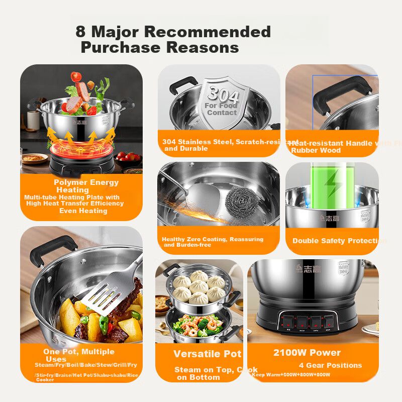 Línea blancaElectrodomésticosOllas y Sartenes EléctricosVaporera Eléctrica CHIGO 17L Acero Inoxidable 3 Niveles