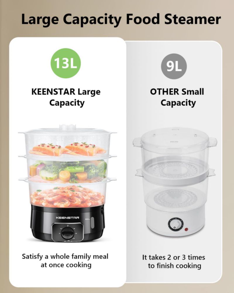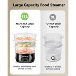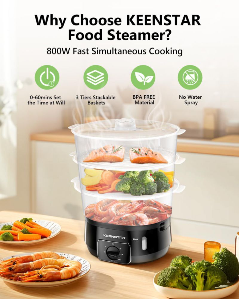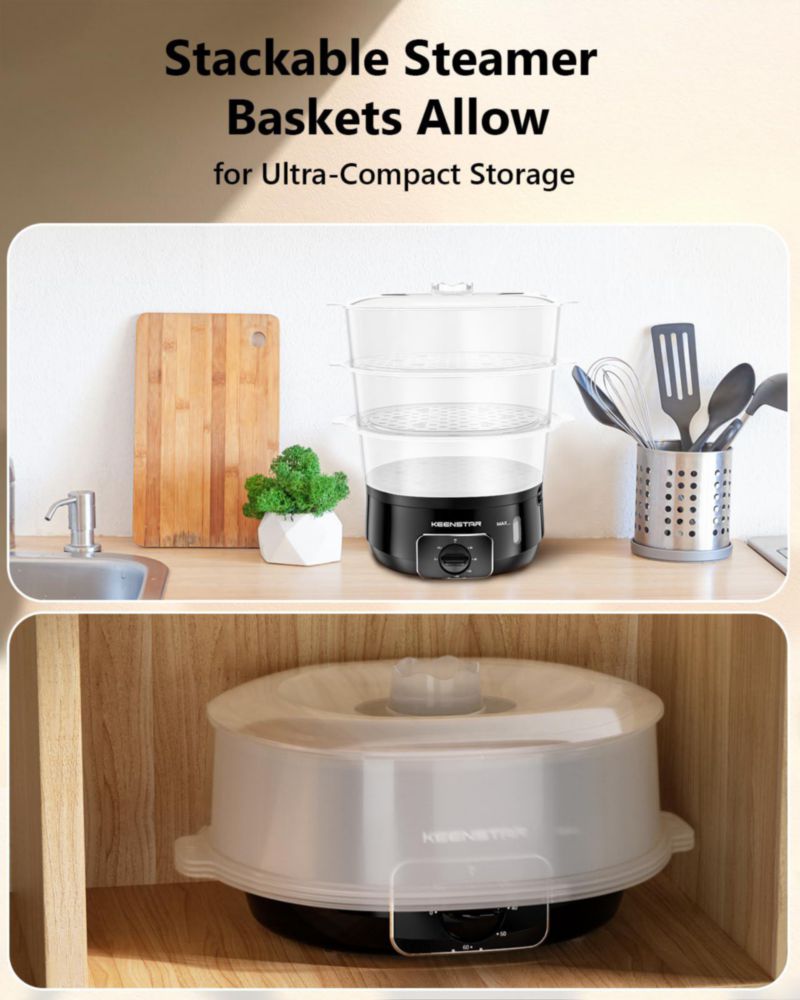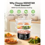 HogarCocinaOllas y VaporerasVaporizador eléctrico de alimentos KEENSTAR 13.7 L 800 W 3 niveles sin BPA