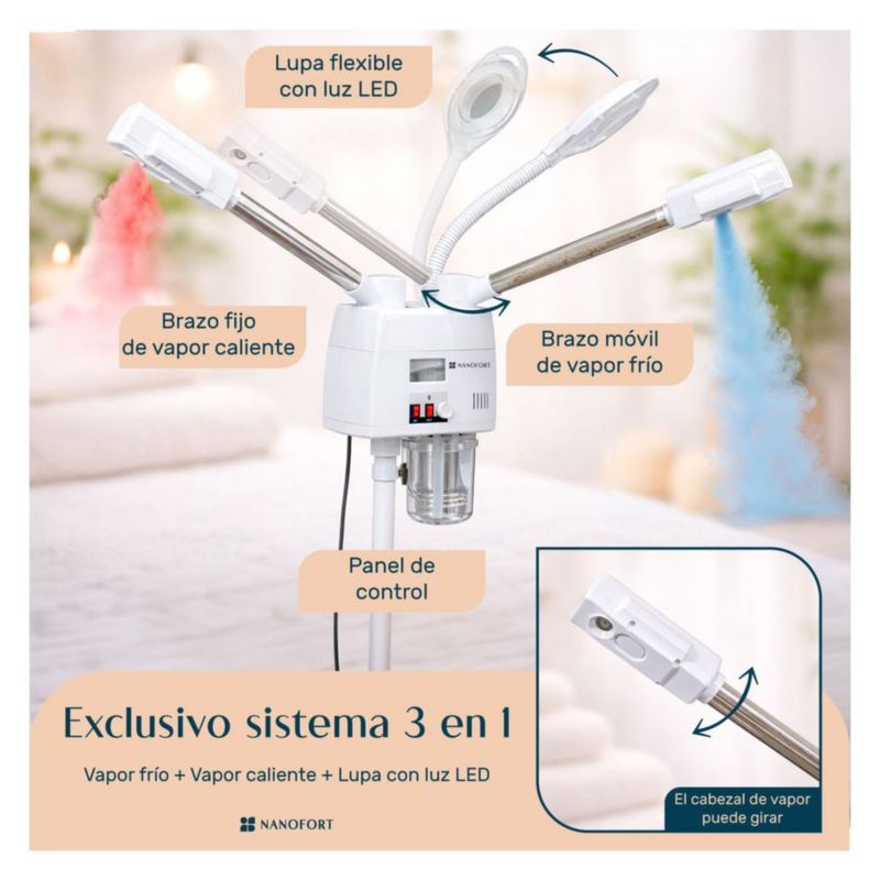 Vaporizador Facial Profesional Lampara Lupa Frio Calor Equipo Estetica Spa Facial Hidratacion Limpieza Profunda Uso Profesional Resistente Ajustable