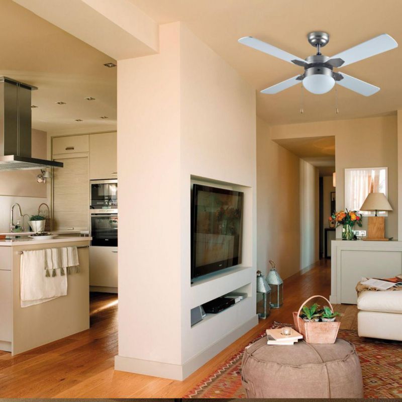 Ventilador 42'' 60W 1Luz Cadena / cuerpo niquel satinado y aspas Blancos / BREZZA