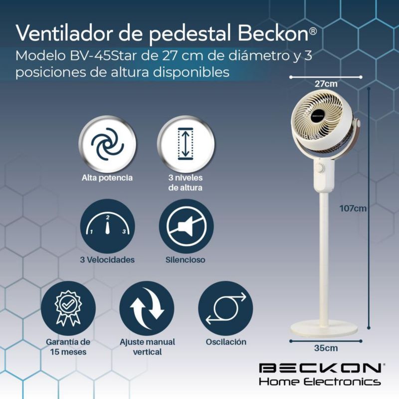 Línea blancaClimatización y VentilaciónVentiladoresVentilador De Pedestal decorativo premium Beckon BV-45Star alta potencia 27cm de diámetro 3 posiciones de altura Oscilación