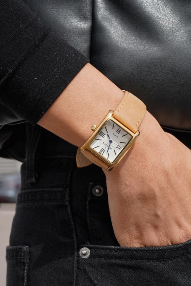 Reloj Peugeot de cuero chapado en oro de 14 quilates