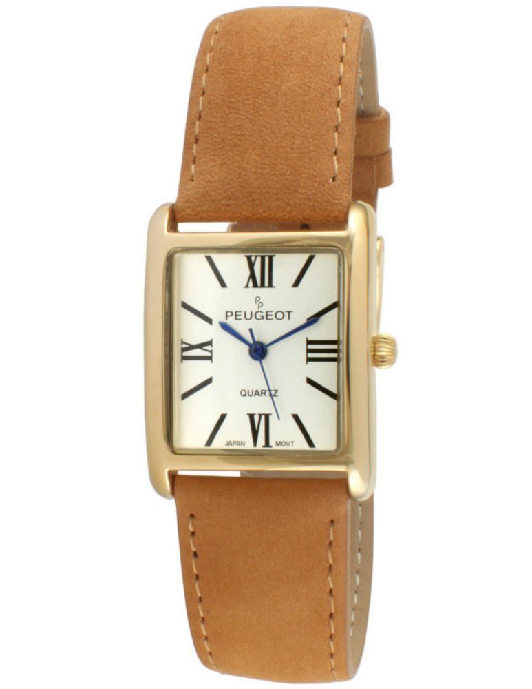 Moda y accesoriosRelojesModaReloj Peugeot de cuero chapado en oro de 14 quilates