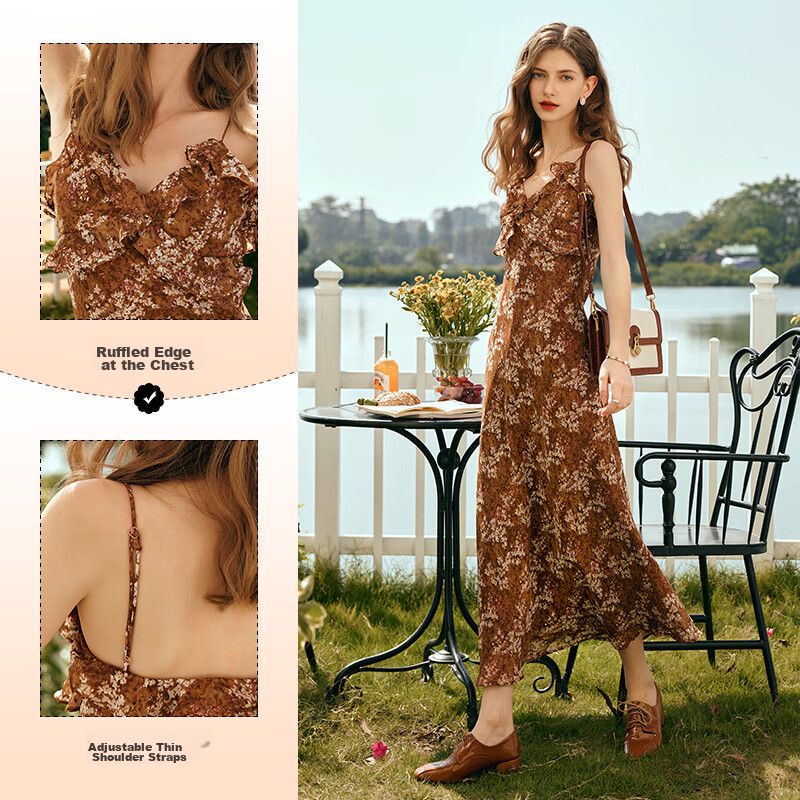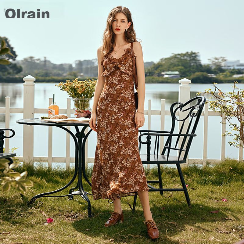 Vestido Floral Olrain largo Café Narciso para mujer
