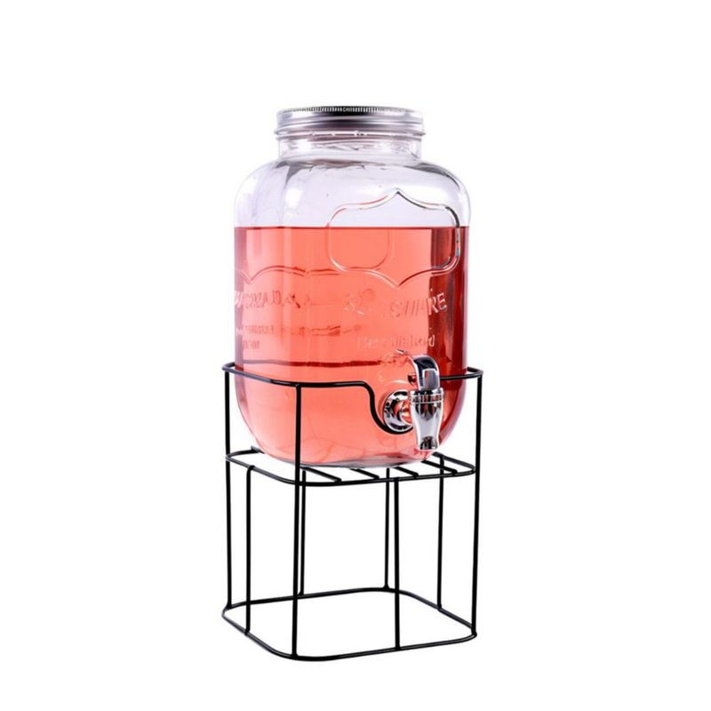 Vitrolero De Vidrio Dispensador De Agua Con Base Hierro Bluelander De 8 Litros con Tapa Antifugas