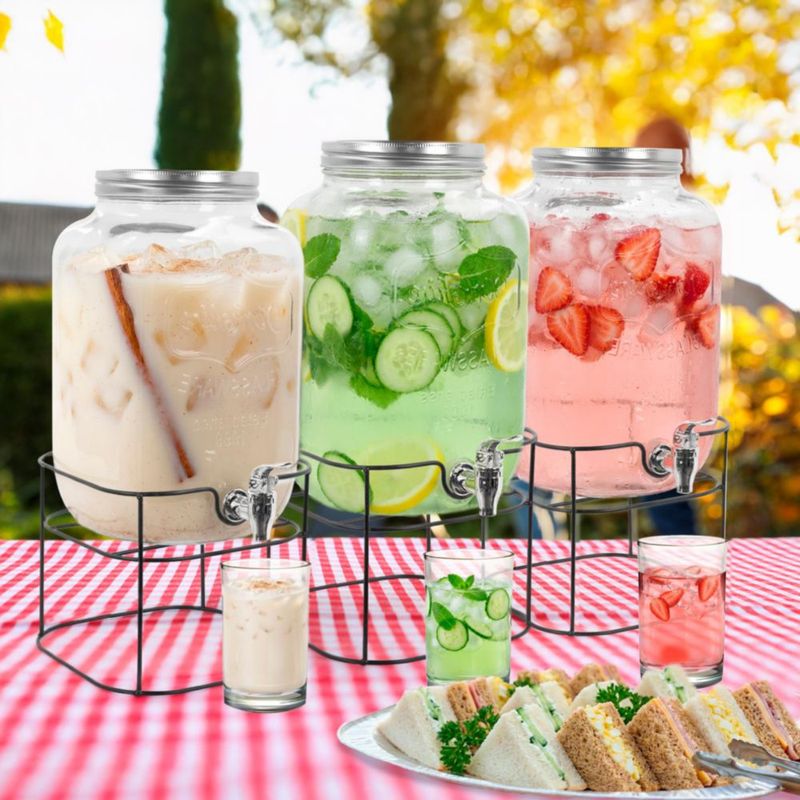Vitrolero Dispensador De Agua Vidrio 8 Litros Onof Mason Jar Cromado