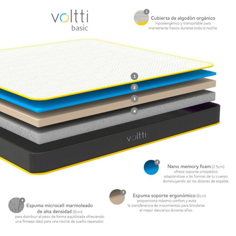 Voltti Basic Colchón en Caja Matrimonial 16 CM + Protector Impermeable