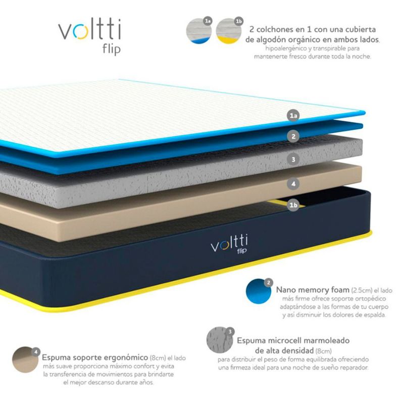 Voltti Flip Colchón en Caja Matrimonial Reversible Dos Firmezas 20 CM