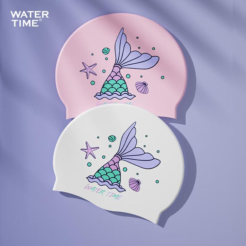 Gorro de natación WATERTIME silicona diseño sirena talla XL para mujer cabello largo rosa