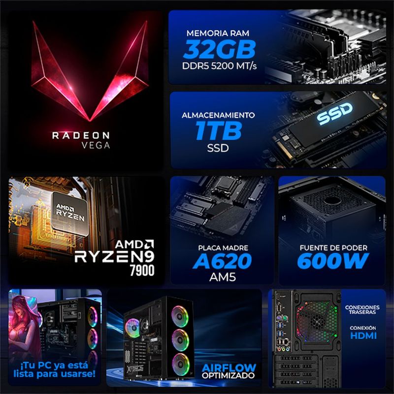 CómputoDe escritorioCPUXtreme pc gaming radeon 720m ryzen 9 32gb ddr5 ssd 1tb black