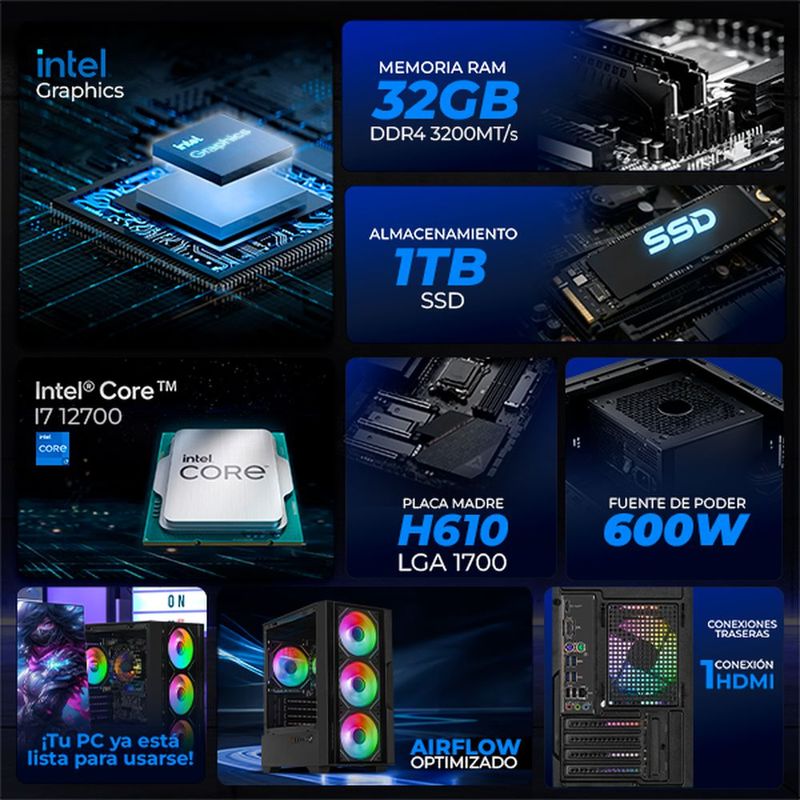 CómputoDe escritorioDesktopXtreme pc gaming core i7 32gb ssd 1tb monitor 27 wifi black