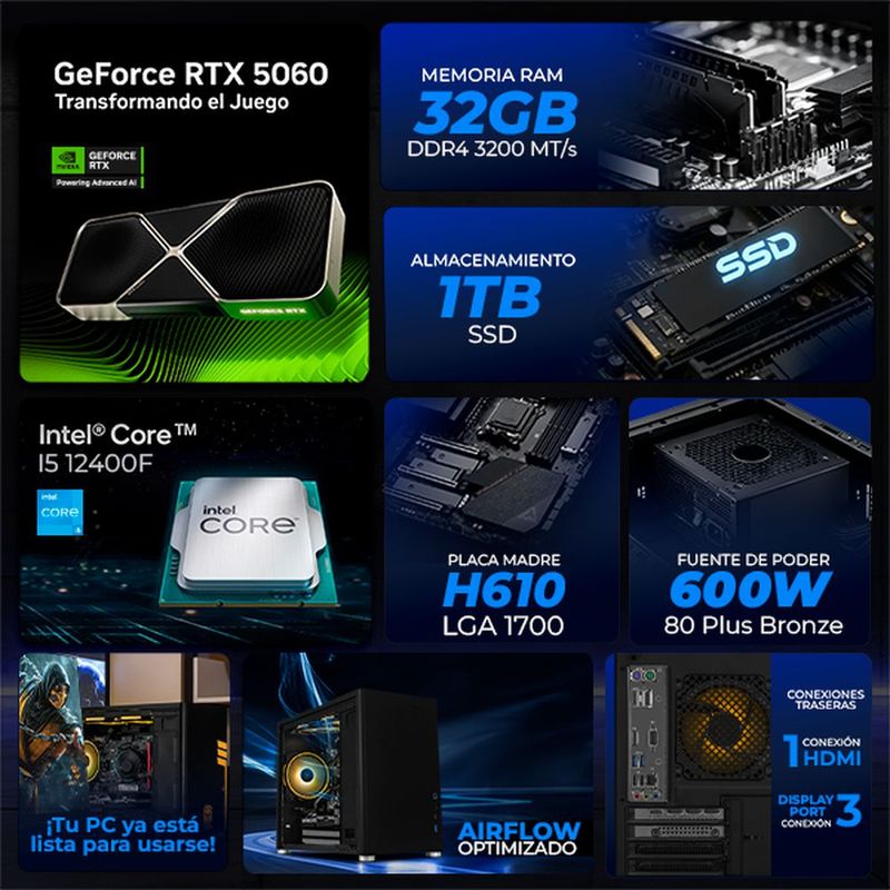 CómputoDe escritorioCPUXtreme pc gaming rtx 5060 core i5 32gb ssd 1tb wifi black