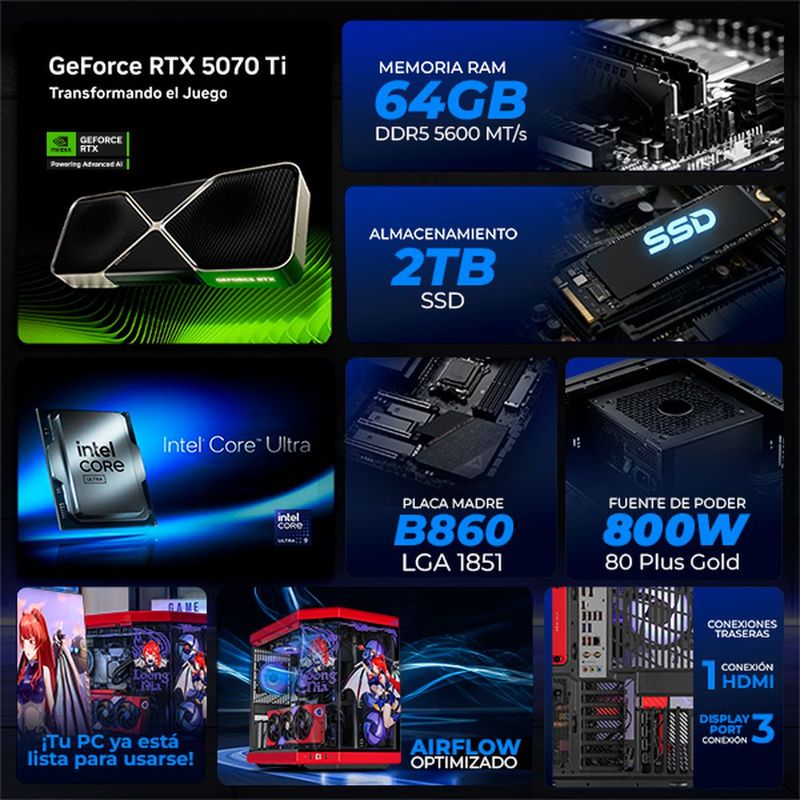 CómputoDe escritorioCPUXtreme pc rtx 5070 ti ultra 9 64gb ddr5 ssd 2tb loong:nia