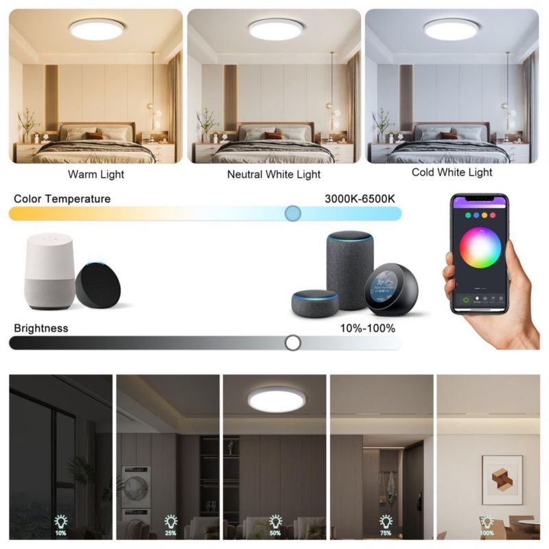 HerramientasIluminaciónFocosYICALE Lampara De Techo Inteligente 24W,